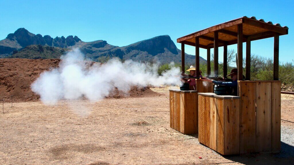 You will shoot authentic reproduction Western style guns. All shooting is done onsite at the ranch’s private shooting range.