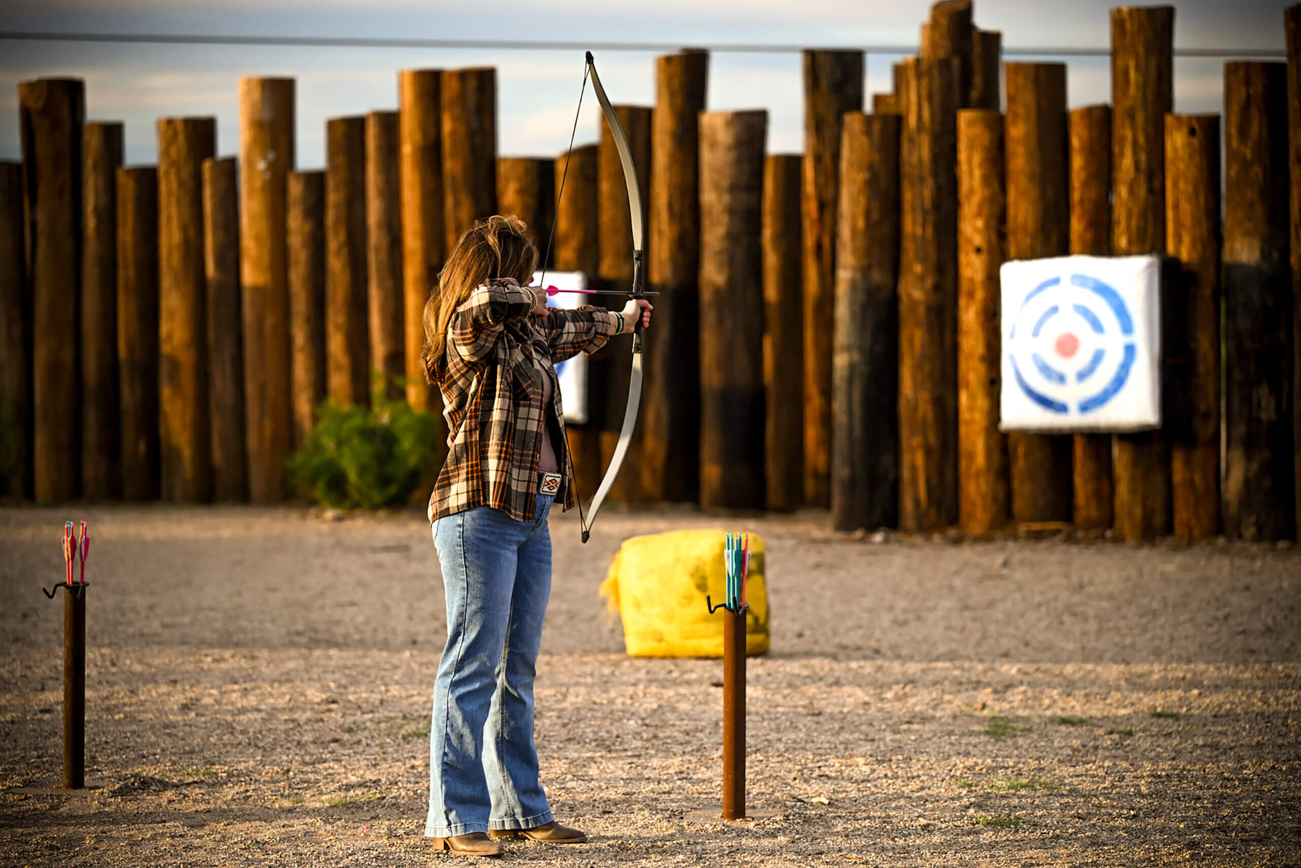 We use recurve bows of all sizes for all ages and levels of strength. Archery is simple to learn, and our instructors will guide you through the safe use of the bow and arrow.